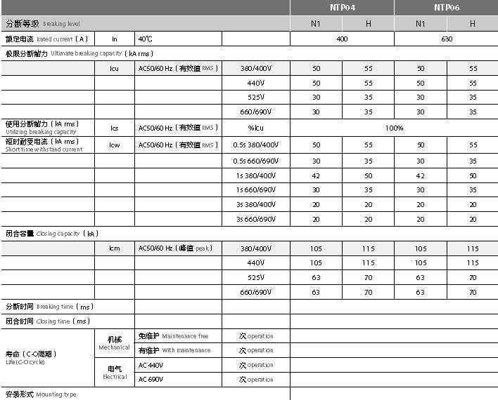 The Air Circuit Breakers are used for power distribution and protection of AC 50Hz distribution main and branch circuits at 690V rated voltage, 1000V rated insulation voltage and 400A to 6300A rated current. The circuit breakers are designed to distribute electrical energy and protect lines and power supply devices from overload, under voltage, short circuit and grounding faults.