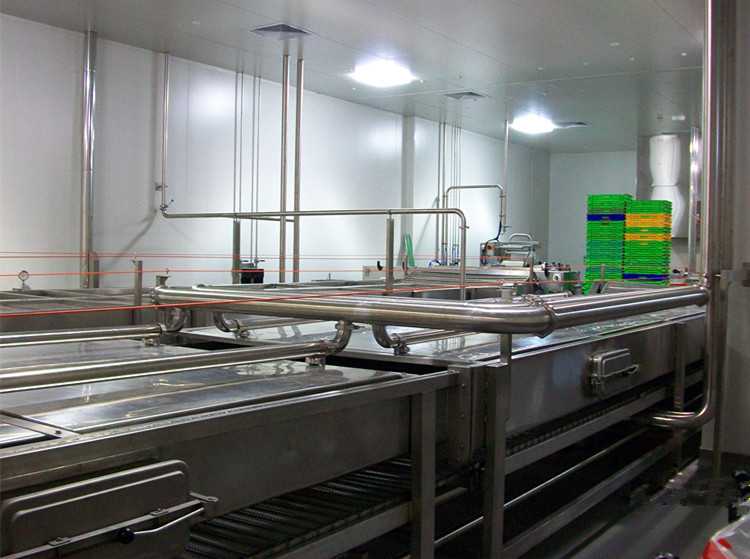 Transport mode: SS 304 net belt or plastic belt carries product through bath tunnel of paeteurization and shower tunnel of cooling.