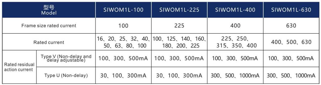 Quick Model Selection Table of SIWOM1L circuit-breaker