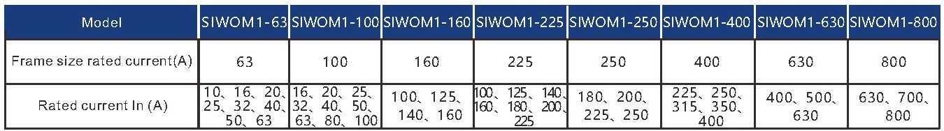 Quick Model Selection Table of SIWOM1 circuit-breaker