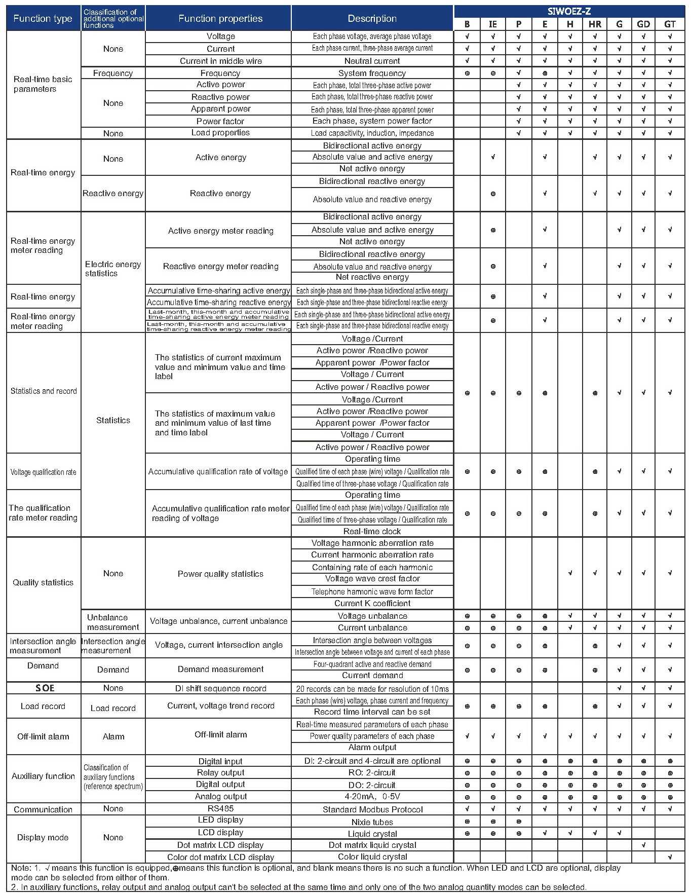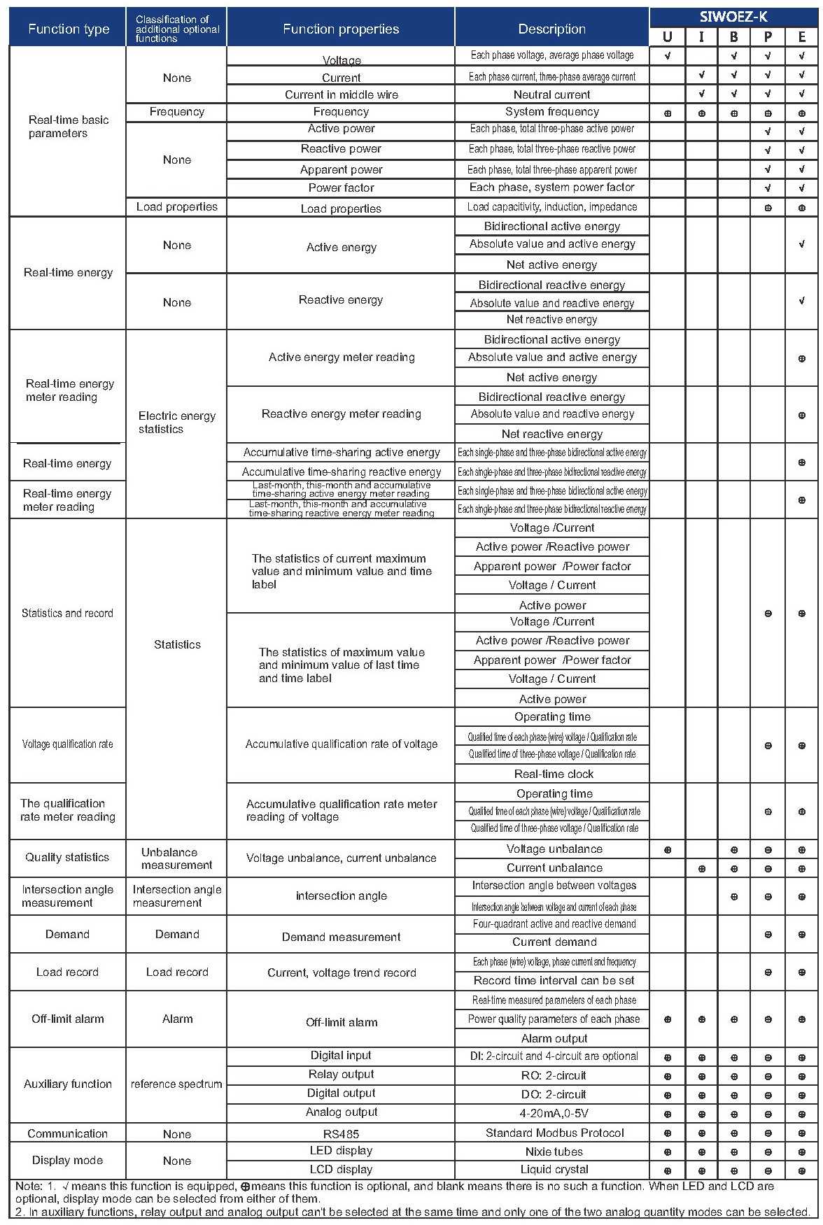 2、In auxiliary functions, the relay output and analog output of SIWOEZ meters cannot be selected at the same time