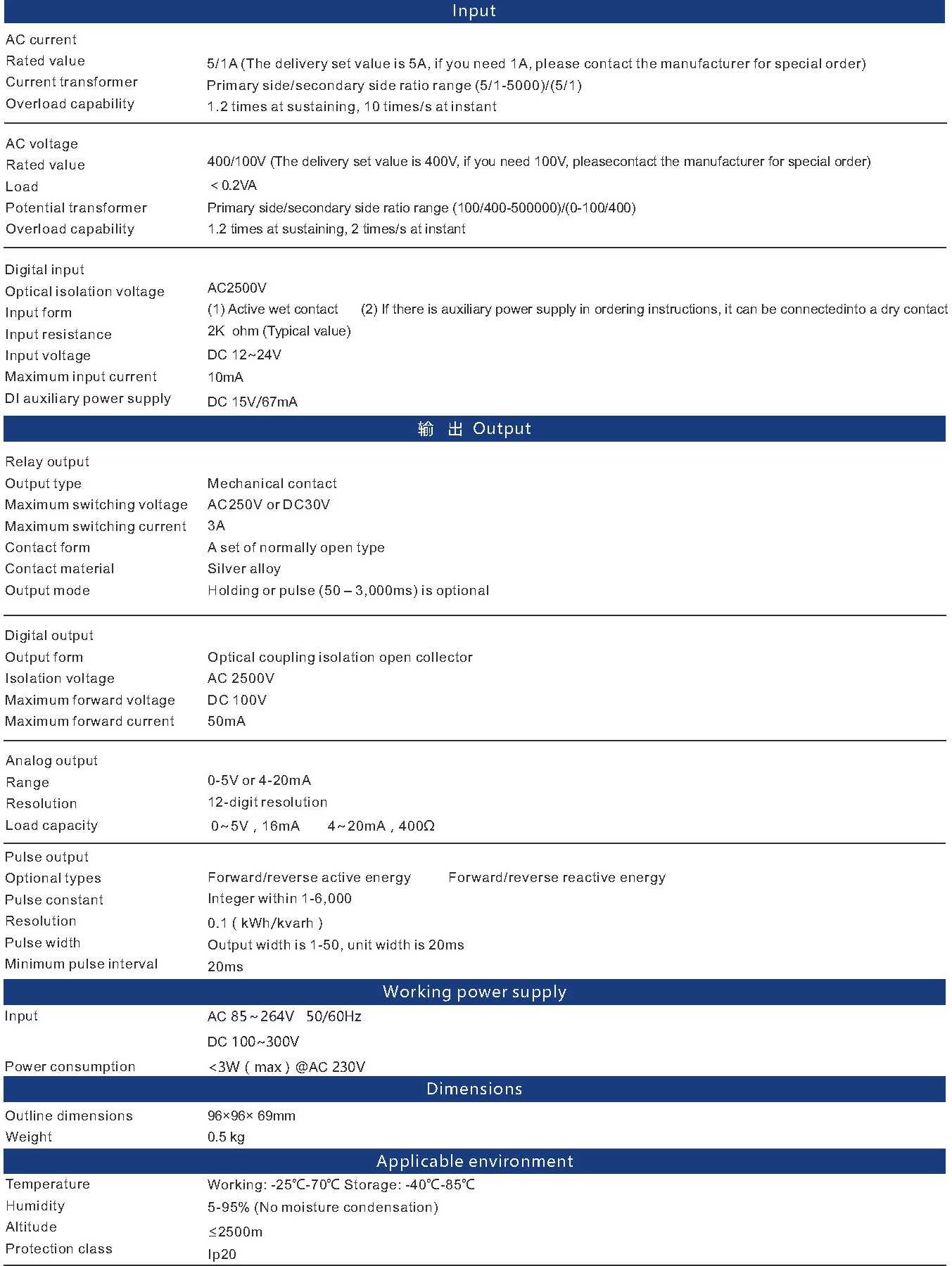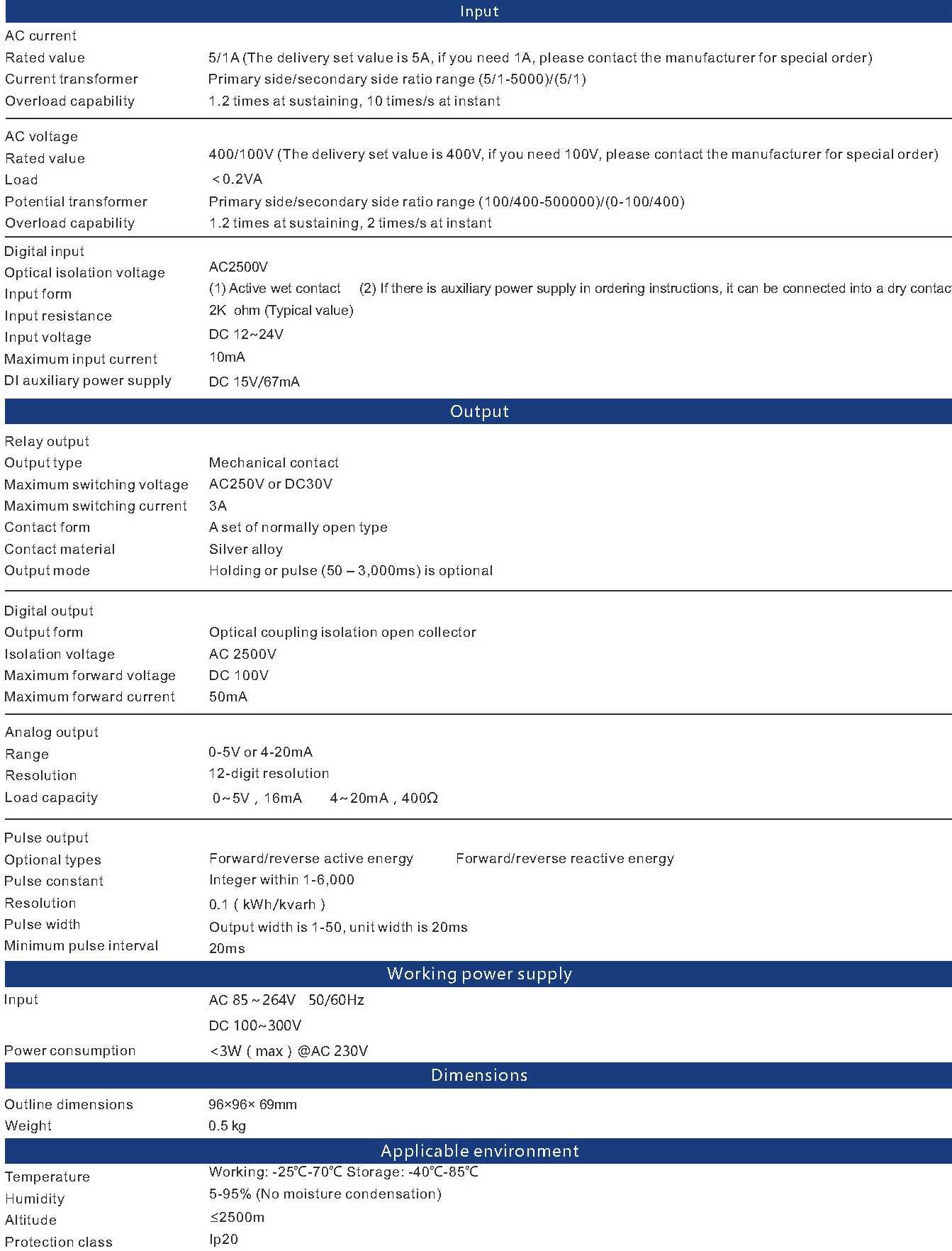 Three-phase programmable power meter is electric energy type, having demand and intersection angle measurement options, with four-circuit DI , two circuit DO and 4-20mA analog output function and communication function, supporting LCD display mode
